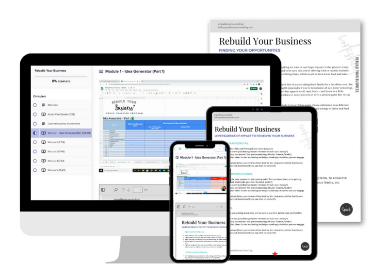 We’re confident the Rebuild Your Business Course will give you the clarity and systems you need to finally feel in control of your business. That’s why we offer a 30-day money-back guarantee — no questions asked.